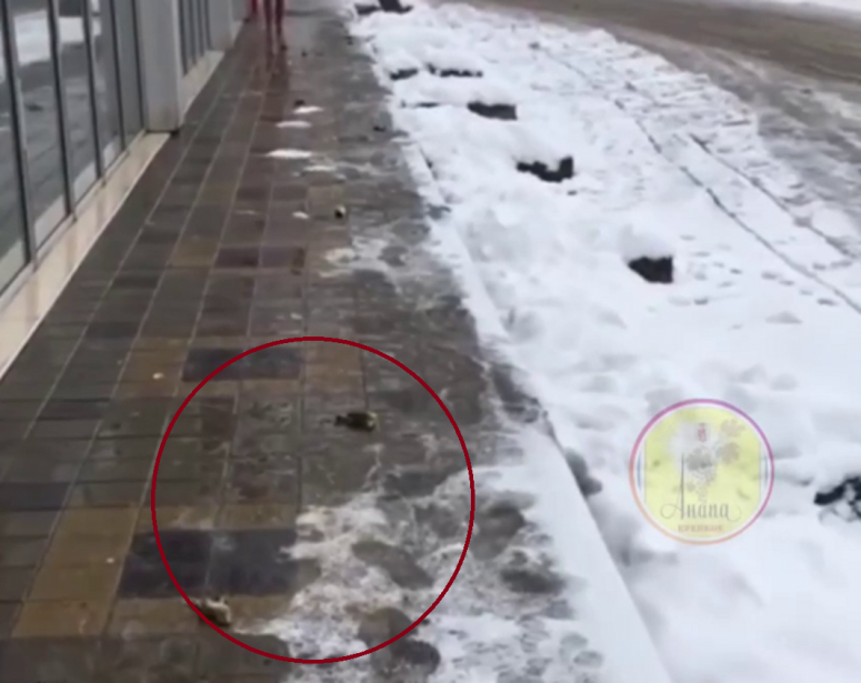 В Анапе очевидцы сняли на видео десятки погибших птиц. По их словам, мертвыми птицами, похожими на чижей, был буквально усеян тротуар на Анапском шоссе.
